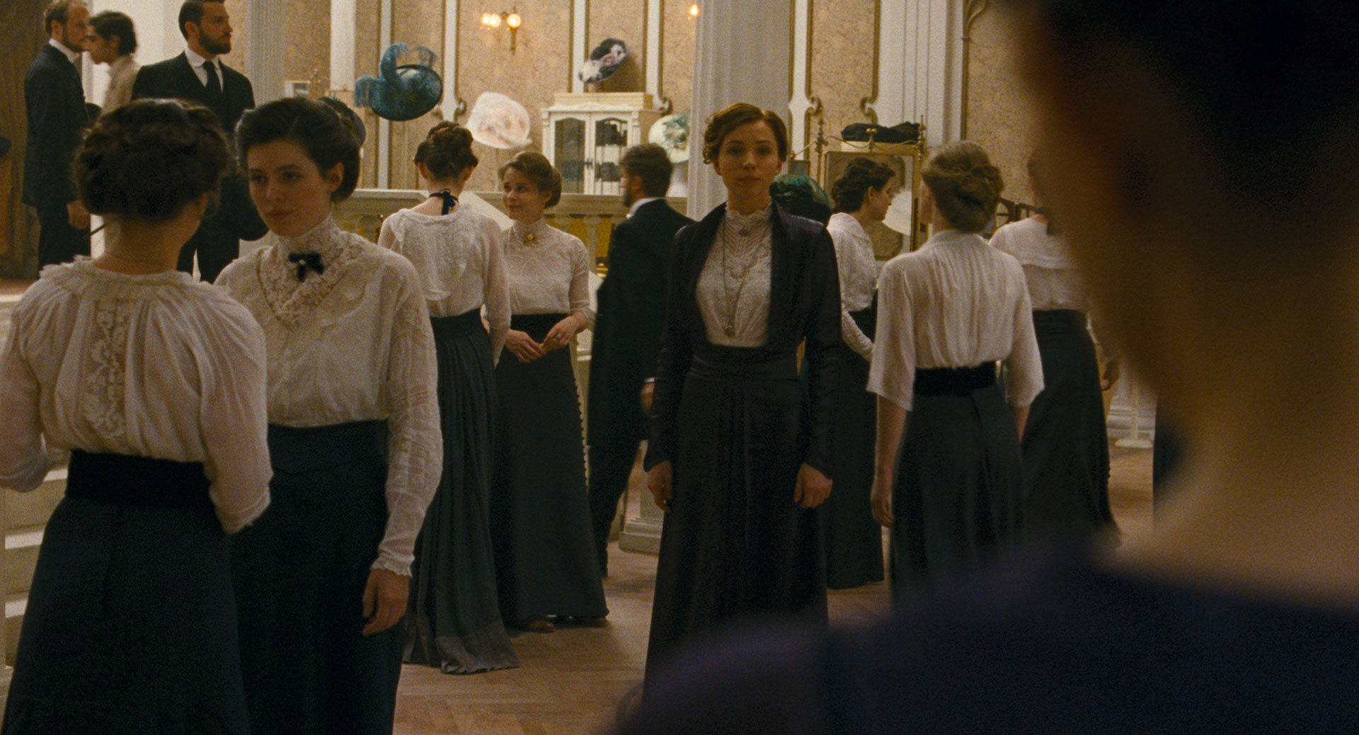 At the center of this mostly plotless journey is a young woman, Irisz Leiter (a stunning Juli Jakab), a rather reticent orphan who has returned to Budapest to seek a career at an established, prestigious hat shop, which belonged to her parents before their untimely deaths. Another unexpected turn of events leads her to uncover that she may or may not have an estranged sibling as well. She is repeatedly told to steer clear of him since he has committed some rather heinous crimes and may be affiliated with the wrong political faction.