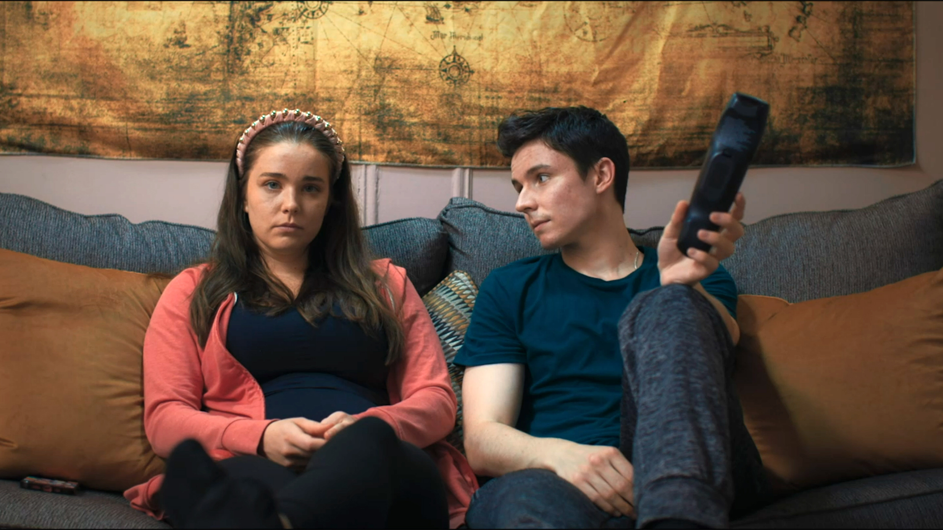 He’s more interested in teaching her the underlying psychology of music, and what makes it perfect for expressing oneself creatively. She’s more interested in his looks and charismatic ways. But it turns out Max also sees music as a way to kindle a romantic connection when he crushes on a girl that he sees dancing in a number of music videos outside their apartment, and some commonality between the two generations is found. Carney lets their closeness develop naturally, and it’s not always a smooth progression, as they occasionally let one another down. Kinlan and Hewson similarly feel effortlessly natural together, their banter feeling lived-in as they know what gets under one another’s skin, especially when it comes to Flora’s ex Ian (Jack Reynor).