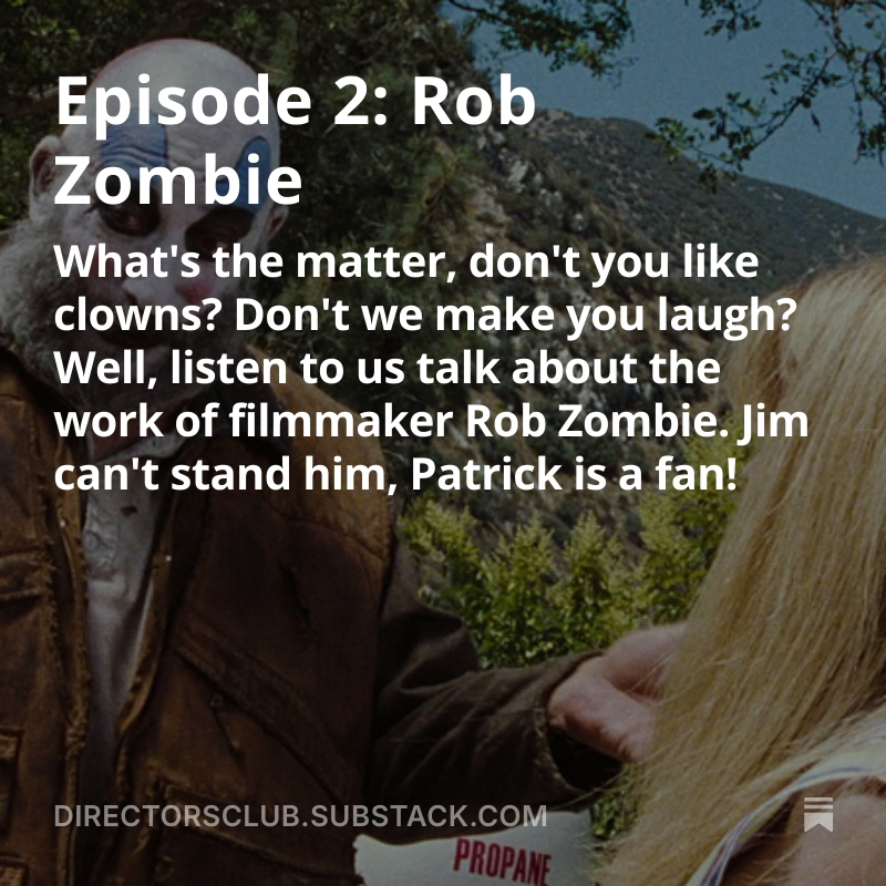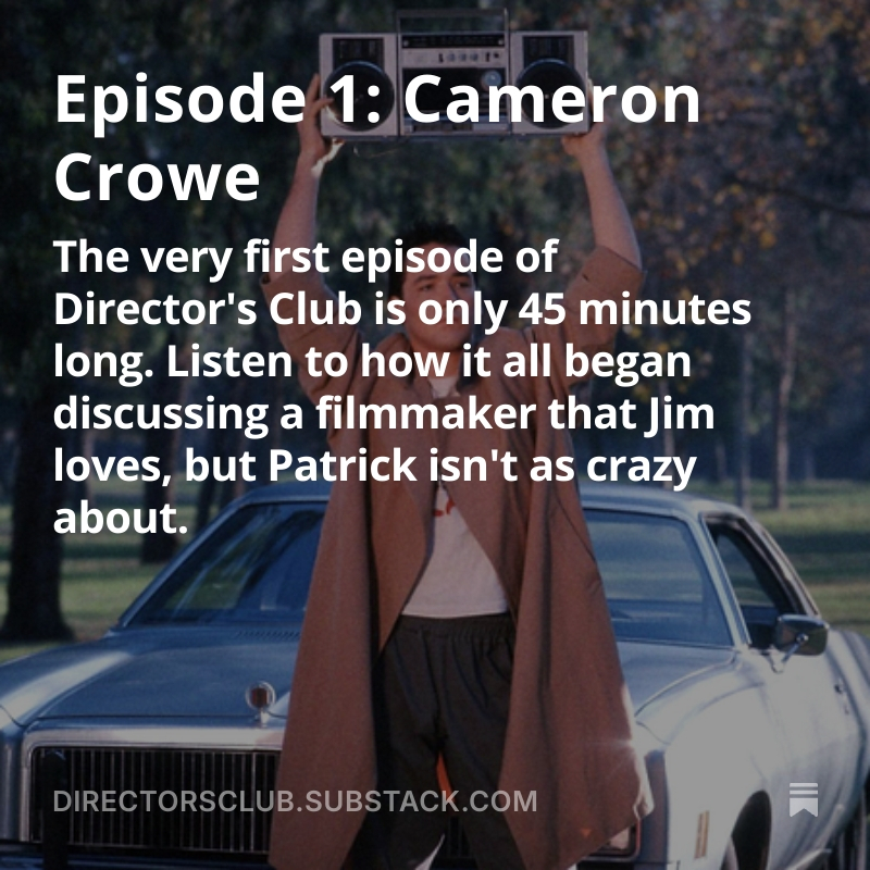 Patrick and I sound so much younger and for me at least, a little dumber. But the original intention behind the first two recordings were for us to defend our taste a little bit. He hated Cameron Crowe; I was a fan (up unto a point). I hated Rob Zombie; Patrick was a fan. Hence, Director’s Club was born in both of our parents’ basements. I was 33, Patrick was a decade younger.